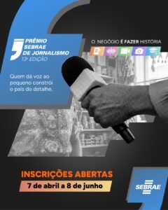 O prêmio será realizado em três etapas: a primeira, em nível estadual, classificará os concorrentes para a etapa regional, que definirá os finalistas da etapa nacional. Confira os detalhes do regulamento no site https://premiosebraejornalismo.com.br/.