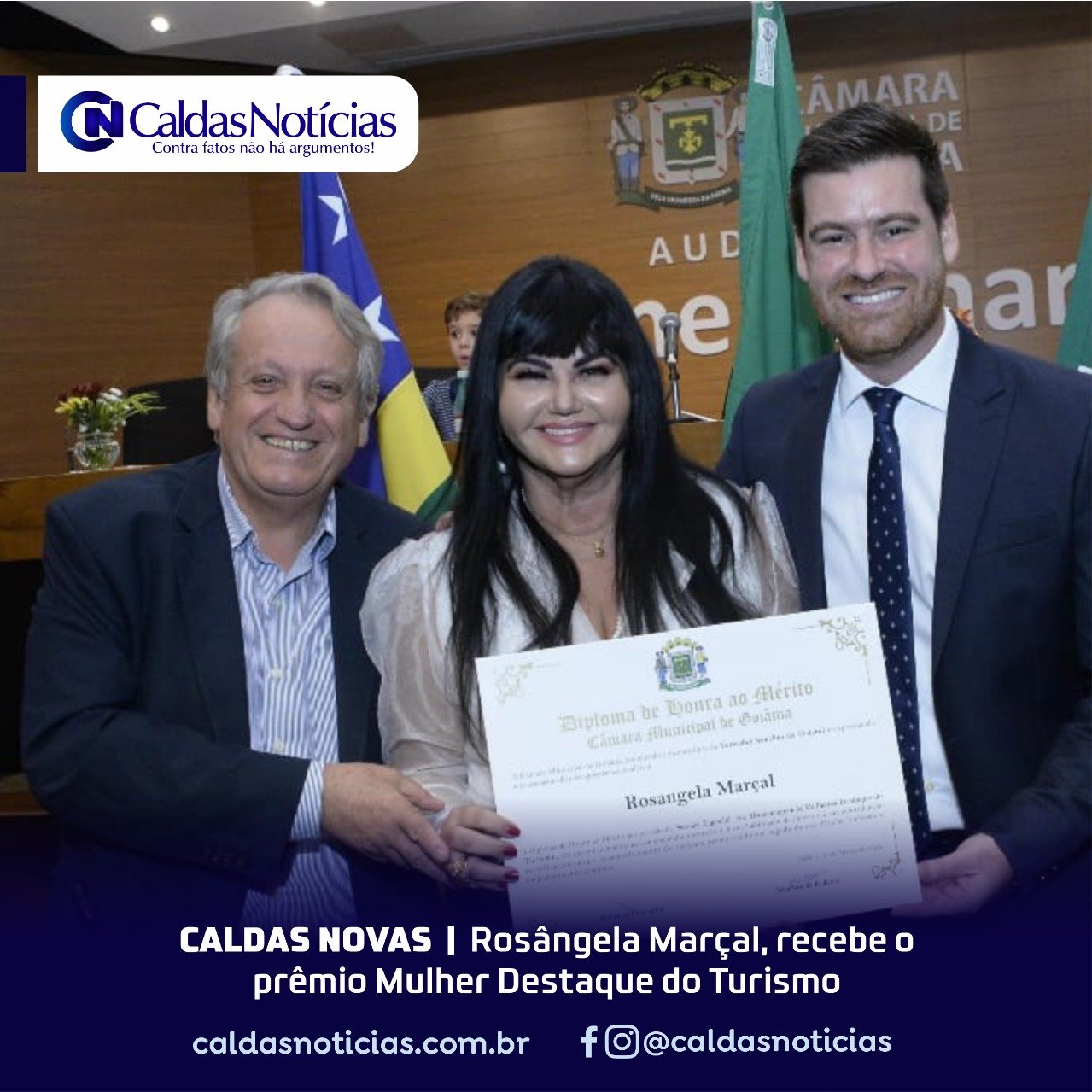 “É com imensa gratidão que recebi , na noite de 31 março, homenagem como Mulher Destaque do Turismo, na honrosa Casa , Camara Municipal de Goiania , proposta do Vereador Sanches da Federal , Presidente da Comissão de Turismo da Camara Municipal de Goiania , e Nárcia Kelly , Secretária de Turismo de Goiânia.